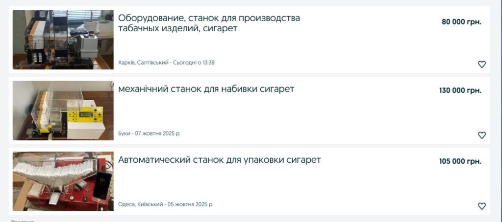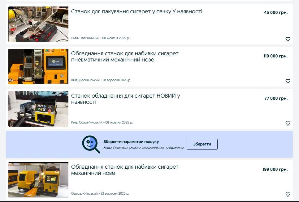 На одному із провідних українських сайтів оголошень можна знайти 20 оголошень про продаж машинок для набивання цигарок.