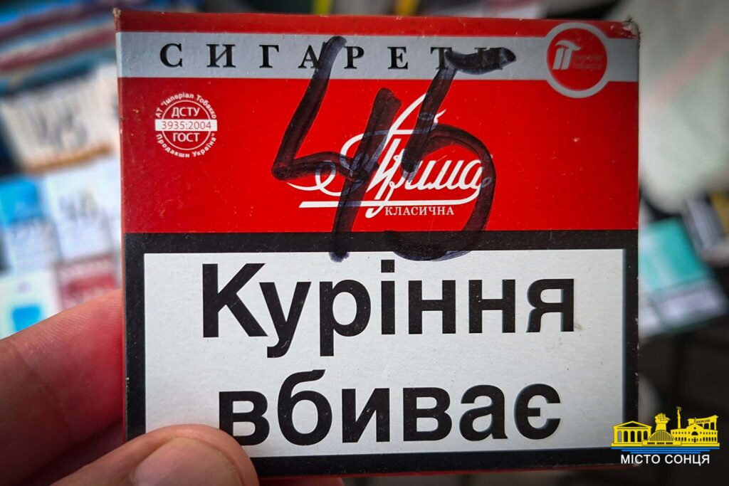 Журналісти «Міста сонця» теж подивилися, які сигарети пропонують херсонцям. У супермаркетах усі пачки з акцизом. Ціни – відповідні.