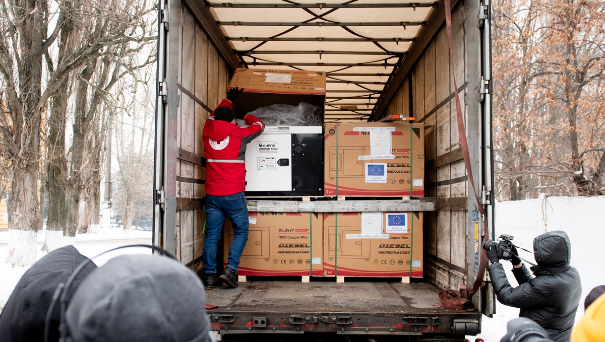 В Україну прибули 300 генераторів, що є частиною запланованої поставки за підтримки Європейського союзу обсягом у 447 генераторів. Із них 445 — малої потужності (13,75 кВт і 15кВт), два — великої потужності (понад 600 кВт).