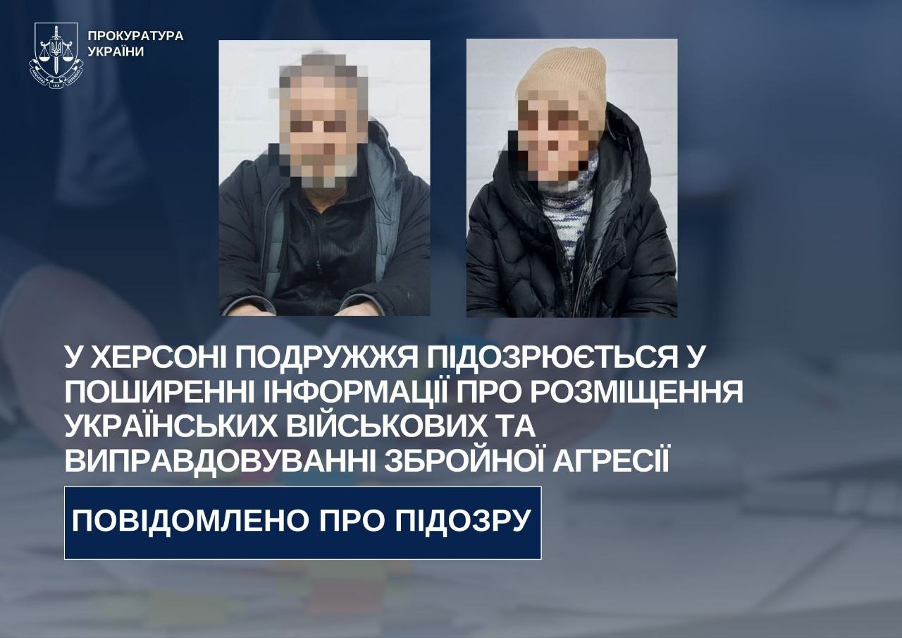 У Херсоні подружжя підозрюється у поширенні інформації про розміщення українських військових та виправдовуванні збройної агресії.