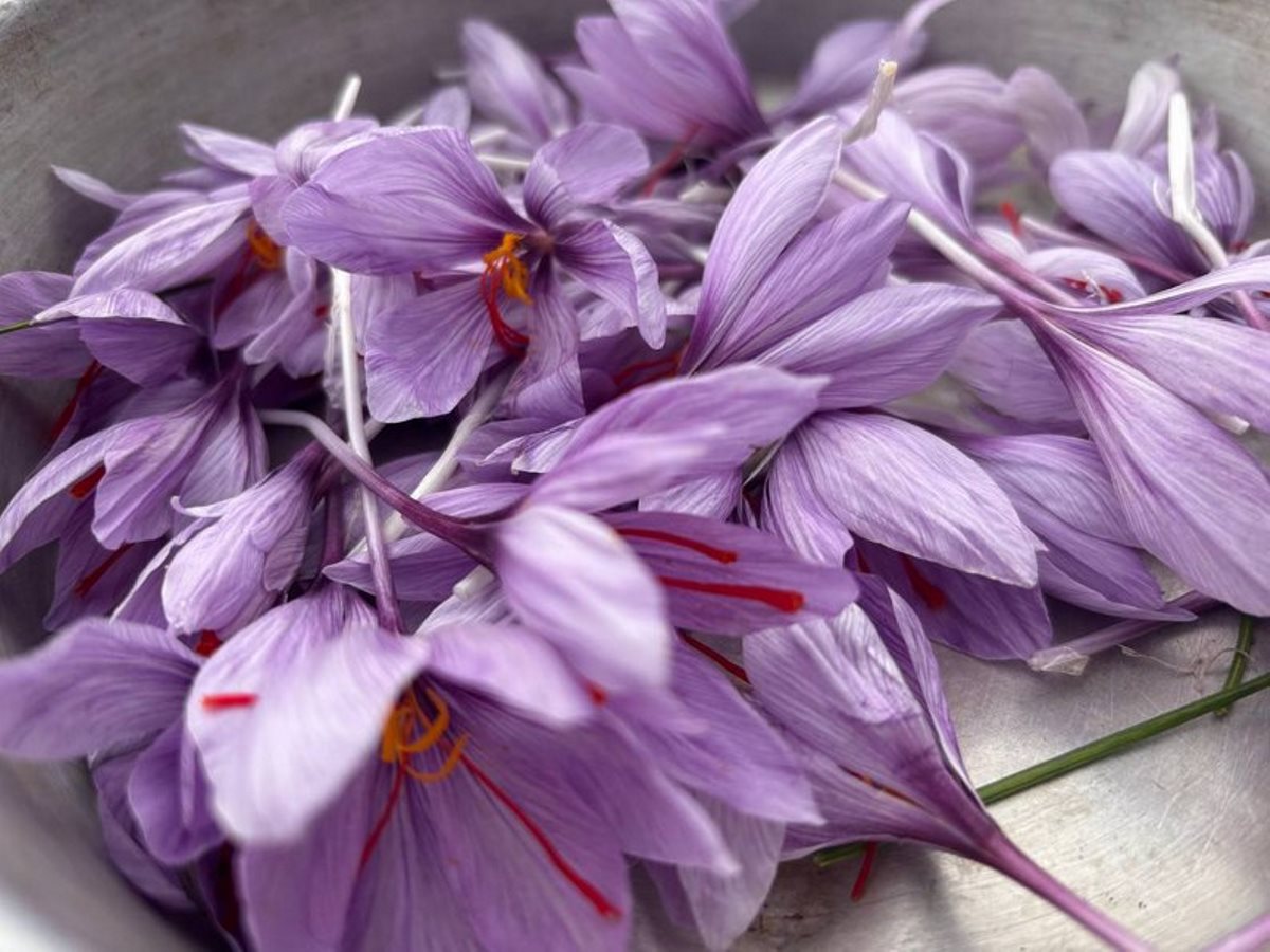 “Щоб була якісна спеція, ми збираємо ці три ниточки. Це і є та найдорожча в світі спеція, шафран. Це називається Crocus sativus, повна назва. Якщо інші крокуси квітнуть весною, то саме цей крокус квітне восени. І саме з квітки цього крокусу збирають рильця, а після висушування виходить спеція”.