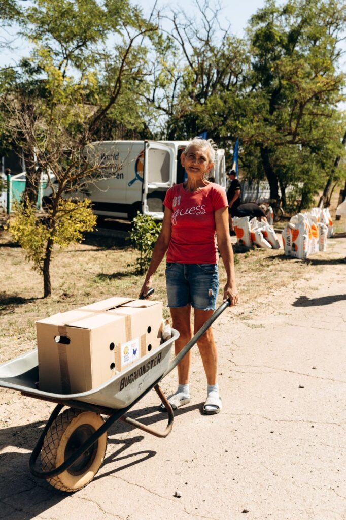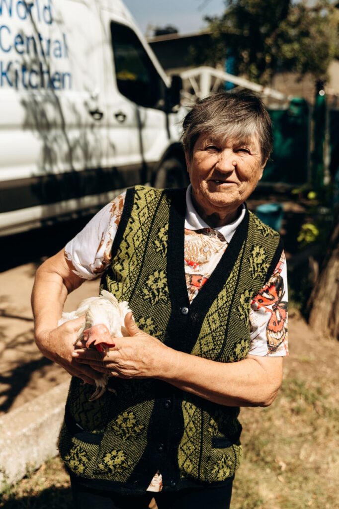 Подібні набори отримали і родини в кількох громадах Херсонщини. Так, у селі Кам’яне Великоолександрівської громади волонтерів WCK зустріли з великою радістю. Люди чекали на цей проєкт, адже Chicken Project для них — це не лише допомога, а й можливість подбати про власні родини, розвивати господарство та навіть заробляти, продаючи яйця.