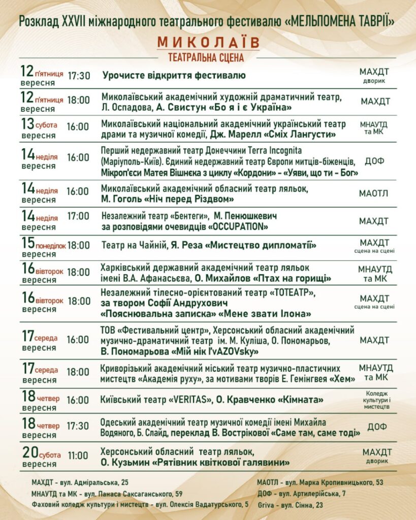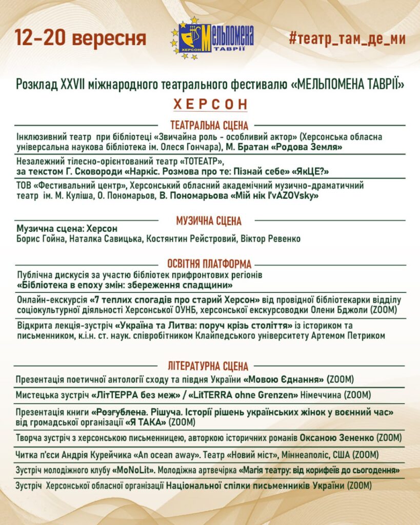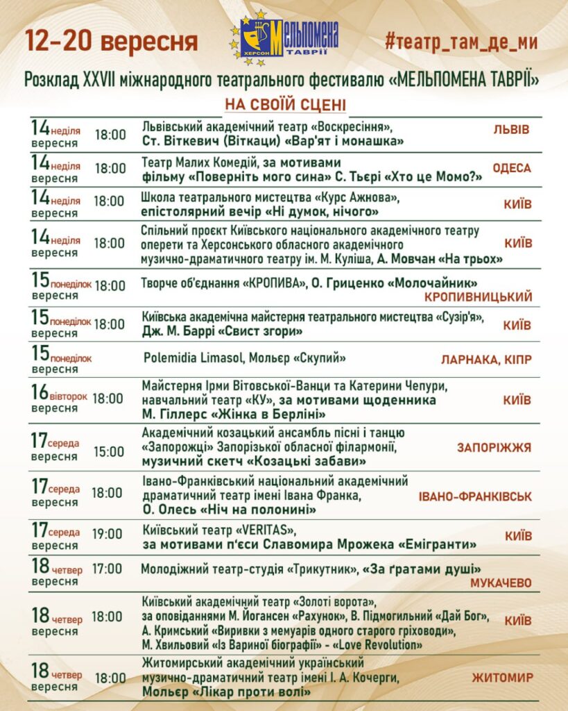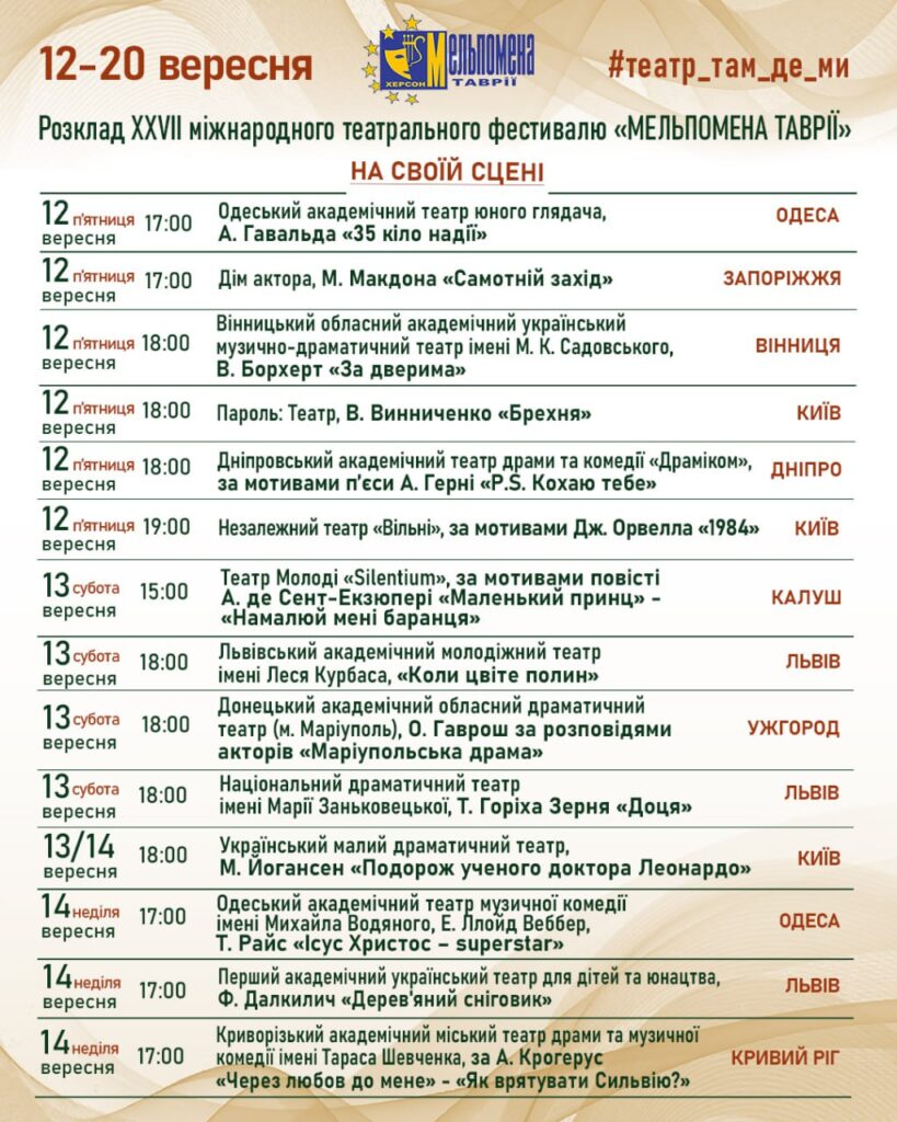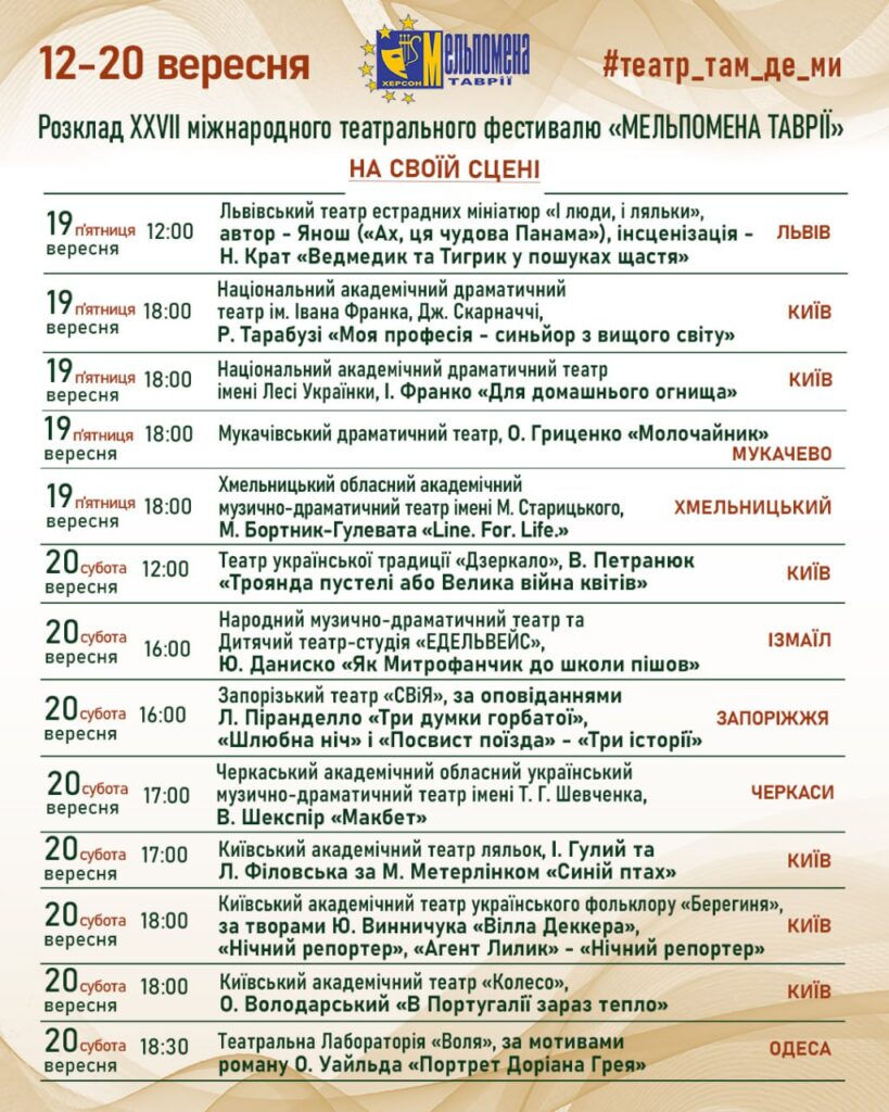 З 12 до 20 вересня відбудеться XXVII Міжнародний театральний фестиваль «Мельпомена Таврії» під гаслом “Театр там, де ми!”
